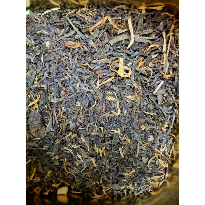 Ingrédients : Thé vert, Fruit du verger, mirabelle, caramel et pétales de fleurs
