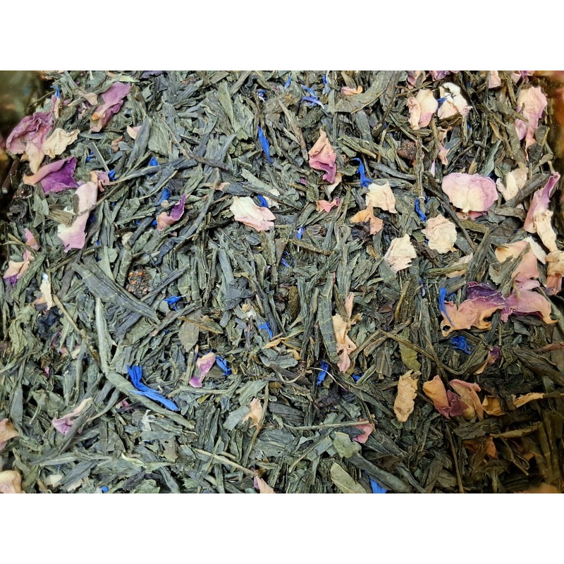 Ingrédients : Thé vert, fraise, fraise des bois, fruit de la passion, rhubarbe, rose, mangoustan et pamplemousse