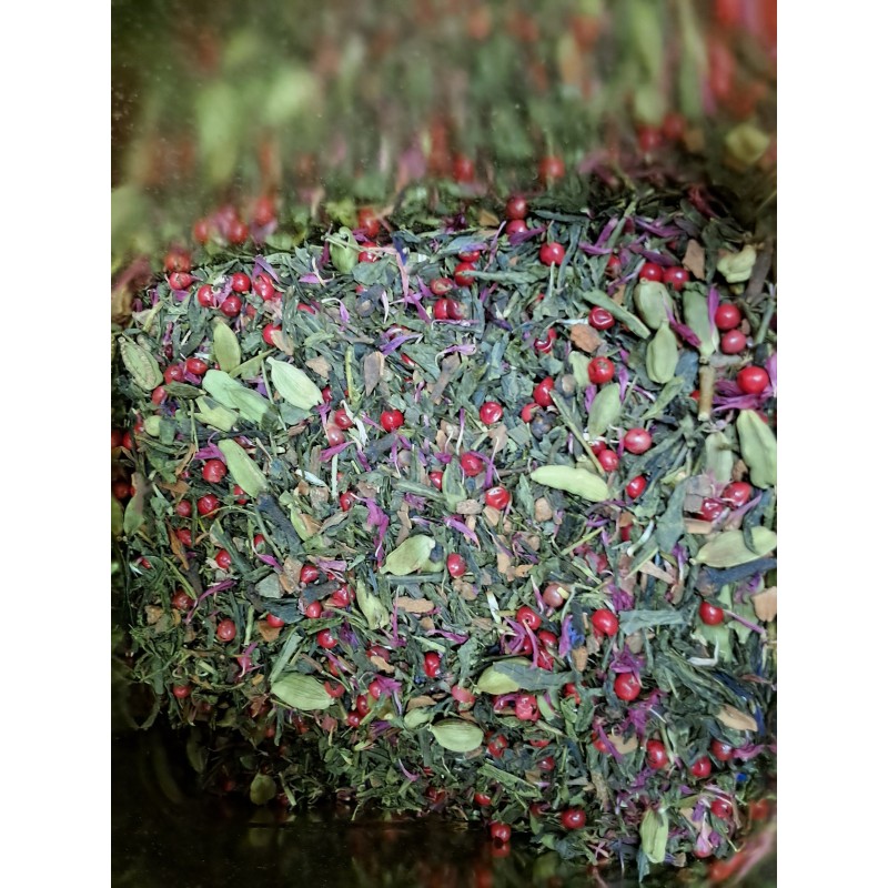 Ingrédients : épices, cardamone, cannelle, baies rose, clou de girofle, noix de coco, fruit de la passion et pétales de fleur