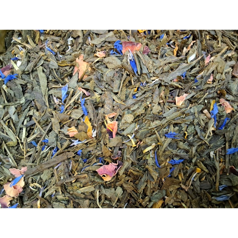 Ingrédients : peche, abricot, pétales de bleuet, pétales de rose et de soucis