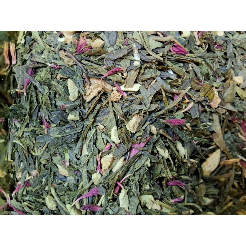 Ingrédients : morceaux de gingembre, citron vert, fruit de la passion et pétales de fleur