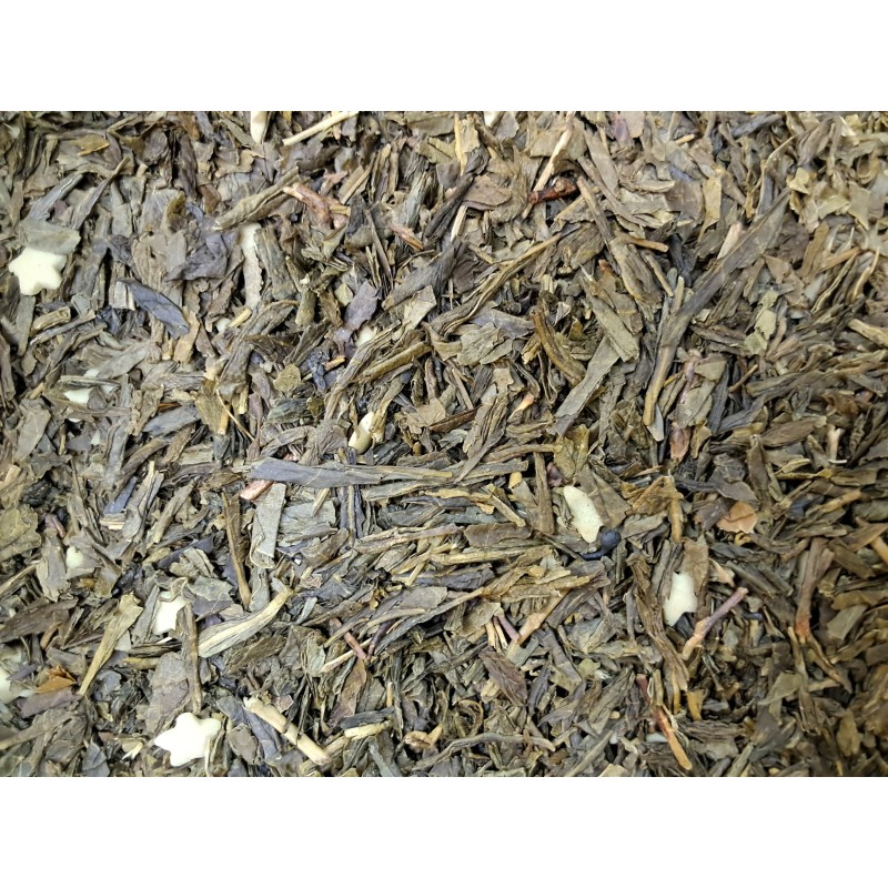 Ingrédients : Thé vert Sencha, étoiles suche, riz farine, amande, amère, orange, caramel et citron